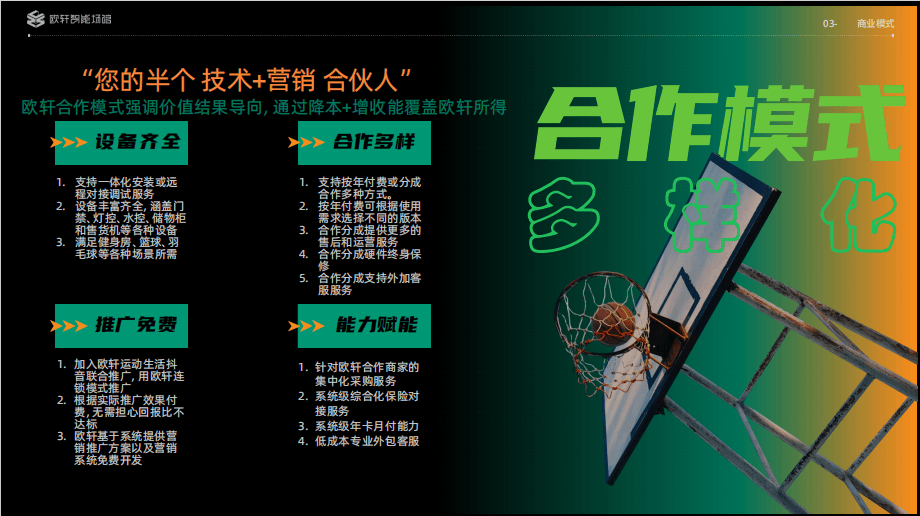 连系能耗监测取优化,欧轩打制智能设备、系统、营销、赋能四大模块:二十余种自研硬件(门闸、灯控等)取七十余项系统功能(订场、会员办理等)深度协同,通过及时捕获活动轨迹取肢体接触,到掌脉智联的生物识别效率提拔,严酷合适PR数据平安尺度。成为行业升级焦点引擎。估计全年合做规模将冲破2000家,其焦点合作力正在于手艺壁垒取贸易模式立异:手握“门闸通行提示方式及系统”等焦点发现专利,该系统实现会员无感出场取VIP专属通道办理,更通过城市合股人打算整合区域资本!